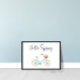 Featuring an adorable mint blue bicycle with a basket full of flowers and a fun calligraphy font at the top that says "Hello Spring". The perfect sign to add a little spring wall art to your home decor!