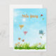 Hello Spring & Blue Sky Card. Flat greeting card to welcome spring.
