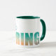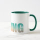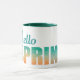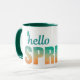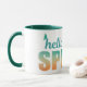 Butterfly green hello spring mug. Modern geometric design font drinkware.
