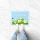 Doormat is shown with a light sky-blue colour background and white border with a hello spring text and a lovely flowers print.