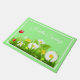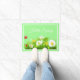 Doormat shown with a light green colour background and white border with a hello spring text and a lovely flowers print.