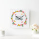 Hello Spring Floral Wreath Square Wall Clock