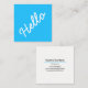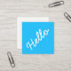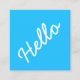 A square hello style profile card template with a simple clean design. A solid colour on the front with "Hello" written in a stylish font placed at 45 degrees. Name, profession/job title along with telephone, email and website address on the reverse side. The name also has an underline in a matching colour to that used on the front, this can also be shortened or lengthened. This template is also a good starting point for further customisation.