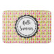 A bath mat with an image of a summertime pattern of popsicles and ice cream in watercolors. Hello Summer written in a fun trendy font inside a round whimsical frame.
