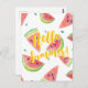Celebrate this season with vibrant postcard. This card features a watermelon pattern with modern text.