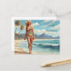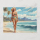Hello Summer Retro Lady Walking on the Beach Postcard
