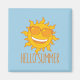 Vector cartoon sun character wearing sunglasses with Hello Summer text. Great for summertime. Keywords: beach, blazing, cartoon, cheerful, fire, flame, friendly, glasses, happy, heat, hot, humour, illustration, season, seasonal, shades, smile, star, summer, sun, sunglasses, vacation, vector, weather, icon, summertime