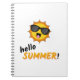 An illustration of a cute funny kawaii happy sun with black sunglasses and "Hello Summer" quote. Summer season is always one of the best vacation and holidays of the year. How are the yellow and orange colour made you happy?