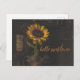 Rustic dark background with a luminesce sunflower in an old vintage jug and the words: hello sunflower in an orange script. [Photo by Ylanite Koppens: https://www.pexels.com/photo/close-up-shot-of-a-sunflower-in-a-vintage-vase-8545560/]