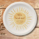 These Baby Shower Paper Plates are decorated with a watercolor sun and stylish typography on a cream background.
