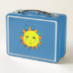 This is a standard metal lunchbox that appears to work just fine. We designed this box ourselves with an uploaded photo and custom text on the front and back. It looks absolutely beautiful except the front of the lunchbox is not centered like it shows in the photo. The print borders don't align with the inset flat part of the box where the preview photo online showed it perfectly centered in there. The back looks nice and centered though.