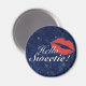 Dark blue button has stars and the words "Hello Sweetie" with a lipstick print. Perfect for fans of River Song or Doctor Who.
