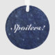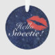 Dark blue ornament has stars and the words "Hello Sweetie" with a lipstick print on one side, "Spoilers!" on the other.