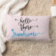 A dual colour pillow in pink and blue with the words 'hello there Handsome' written in awesome typography.