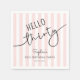 This 30th birthday party napkin showcases modern script typography reading “Hello Thirty,” complemented by a soft pink and white striped background. It's simple yet stylish design makes it a perfect addition to her celebration party.