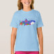 This shirt was designed by Brandon Wilkins and features a friendly, colorful whale.