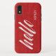 Hello White Script Name on Red Linen Texture Photo Case-Mate iPhone Case