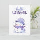 Celebrate the season with this charming holiday card featuring a delightful snowwoman, ready to bring joy to your winter greetings.