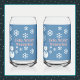 A Slice of Life and Delight presents Hello, Winter Wonderland can glass with a snowman decorated with white snowflakes, pink writing, and a blue backdrop. The snowman can glass also have a blue hat and scarf.