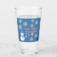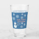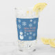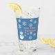 A Slice of Life and Delight presents Hello, Winter Wonderland glass tumbler with a snowman decorated with white snowflakes, pink writing, and a blue backdrop. The snowman glass tumbler also have a blue hat and scarf.