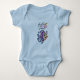 “Hello World” Fish-Themed Baby Bodysuit baby clothing, bodysuit, fish design, infant apparel, cute animal graphic, light blue colour, unisex babywear. This image features a light blue baby bodysuit laid out flat. The bodysuit has a colourful graphic of a smiling fish surrounded by bubbles with the text “hello world” above it in a playful font. The design is charming and suitable for infants, making it an interesting choice for parents looking to add a whimsical touch to their baby’s wardrobe. The combination of the friendly fish character and the welcoming phrase captures the innocence and joy associated with new life.