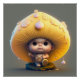 The cutest little mushroom kid! He's holding out the remaining shoe, hoping for a little help...