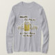 Bar, tavern, pub, club, or party fun: "Help I've Fallen & I Can't Reach My Beer!" Overflowing Beer Mug on bar, with waving hands visible above the bar. Colour cartoon. Black, yellow, blue, white. Note: There are two versions of this design, I think this one looks best on light colours, but you may like the other one.