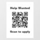 A line of display text is at the top. You can edit the text to show a custom message. (Shown: Help Wanted) A QR code is in the center. (Remember to enter your website URL for the QR code to work correctly.) Another line of display text is at the bottom. You can edit the text to show custom message (shown: Scan to apply).