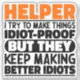 Funny Helper Sayings "Helper I Try To Make Things Idiot Proof But They Keep Making Better Idiots". Grab this Funny Helper design as a funny gifts for an awesome mum, dad or friend.