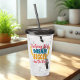 This teacher design features yellow, red and blue text with pencil accents on the front of the tumbler.