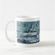 Beautiful landscape of Helsinki featuring the historic National Cathedral and City Hall. Blues on white from an old stamp. Contains cancellation mark on the right. Image is doubled to be viewed from both sides.