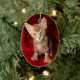 This adorable tabby kitten has six toes! Known as a hemingway cat this cute kitten is on a red background and makes a beautiful keepsake! This kitten keepsake ornament also makes a great gift!