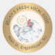 A white hen with a beautiful gold gradient border and editable circle stamp of descriptive text with optional heart.