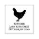 Vintage hen chicken logo self inking return address stamps for home, business, restaurant, butchery, fresh eggs farm, cafe, chef cook, bbq king etc.