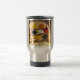 This design is a hen house. The hens are sitting on a roost and there is eggs at the bottom. This hen house design looks great on this Travel Mug