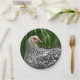 This paper plate features a silver laced wyandotte hen posing with tall grasses in the background. Great for parties and picnics!
