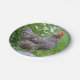 This plate features a barred rock hen posing on a wooden mushroom. Great for parties and picnics. Choose your size plate.