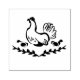 Hen nesting with two yellow chicks. The chicken is done in a line art style, while the little ones was done a block stamp style. The straw was replaced with elegant black vines