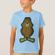 The t-shirt feels and looks great quality, a good thick cotton. It will be a little big for my son, but that means he will be able to wear it and not out grow it too soon. The print was as described on the order when personalised. True size, shape and colour T-shirt- thanks.