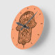 Henna Hand of Hamsa (Orange) Round Clock