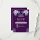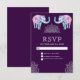 Elegant RSVP card featuring an elegant henna art and beautifully decorated elephants against a dark purple background.