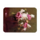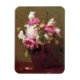 Henri Fantin-Latour Peonies and Roses magnet. French artist Henri Fantin-Latour is one of the great master flower painters of Western art. White Peonies, Roses and Narcissus depicts a bouquet of flowers in a purple vase with light green background. The blossoms of the flowers are allfresh and vibrant and a few petalst have fallen to the table. The pink of the roses contrasts beautifully with the white of the peonies and narcissus flowers. A beautiful gift for fans of Henri Fantin-Latour, flower paintings, and French art.