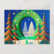 The Henri Matisse Christmas Holiday Postcard features a vibrant and festive scene. The background is filled with a rich red colour, symbolising the warmth and joy of the holiday season. In the centre of the postcard, there is a beautifully decorated Christmas tree adorned with colourful ornaments and twinkling lights. The tree is surrounded by presents wrapped in various patterns and colours, adding to the festive atmosphere. To the left of the tree, a group of joyful carolers can be seen, singing in harmony and spreading holiday cheer. On the right side of the postcard, a cosy fireplace is depicted, with stockings hanging above it and a crackling fire providing a comforting glow. The overall composition of the postcard is balanced and visually appealing, capturing the essence of a merry Christmas celebration.