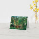 Henri Rousseau Exotic Landscape note card. Oil painting on canvas from 1910. French painter Henri Rousseau fell in love with tropical scenes during his world travels. Exotic landscape is one of his famous primitivist jungle paintings feauturing monkeys playing in the forest. Two monkeys hang from an orange tree knocking fruit down to their friends below, while a larger monkey snacks on an orange nearby. The tropical foliage is rich, dense, and green, featuring white lilies and other tropical flowers. A pretty gift for fans of Henri Rousseau, jungle paintings, tropical landscapes, primitivism, and French art.