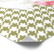 Digital watercolor Havenese dog portrait with beads and bow, on classic herringbone pattern background