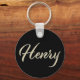 Ein sehr schöner edler personalisierter Button Schlüsselanhänger im whitegold Lettering Look auf schwarz für Henry.