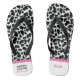 Celebrate brides to be with these disco cowgirl themed bachelorette party flip flops. They have a fun black and white cow hide patterned design with personalised text at the heels of the shoes. The left shoe can be personalised with your own "her last ride" message or other text. While the right shoe is ready to be personalised with a name.