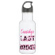 Celebrate brides to be with these disco cowgirl themed bachelorette party water bottles. Black and white cow hide patterned letters spell out the message LAST RODEO with the bride's name above in pink script lettering.