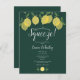 Featuring lemons greenery on an emerald green background, this fun botanical bridal shower invitation can be personalised with your special event information. Designed by Thisisnotme©