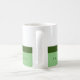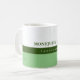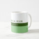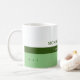 Nice green and white coffee-mug personalised with name and profession (landscaper)
